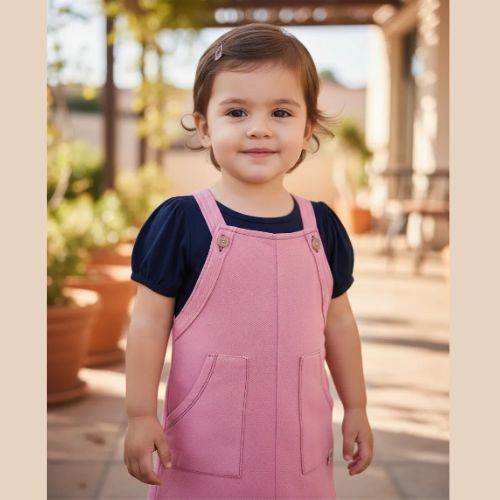 Apresentamos um conjunto encantador, perfeito para as pequenas fashionistas que desejam estilo e conforto. Este conjunto é composto por um salopete confeccionado em algodão sarjado, e um top de manga ciganinha feito em algodão.