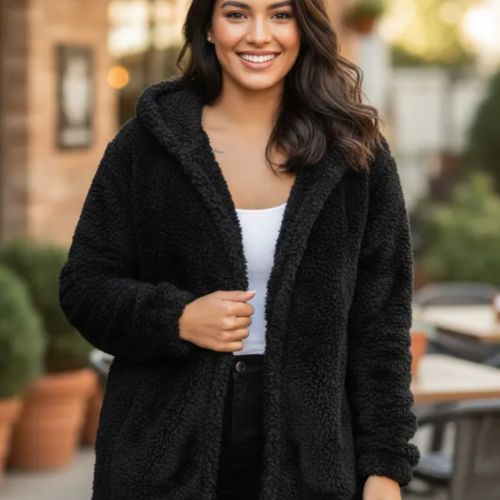 Casaco Feminino Fofinho Com Capuz Cereja Rosa