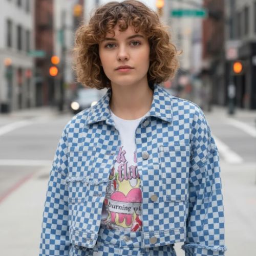 Jaqueta Feminina Cropped Jeans Quadriculado Enfim
